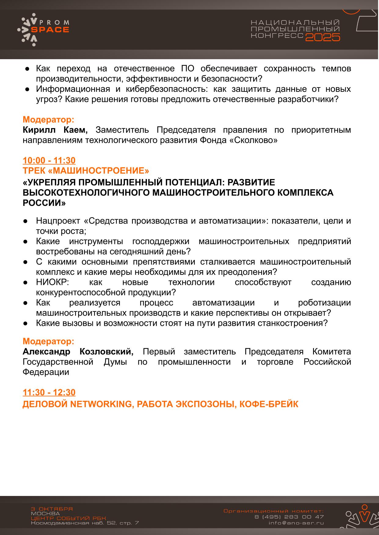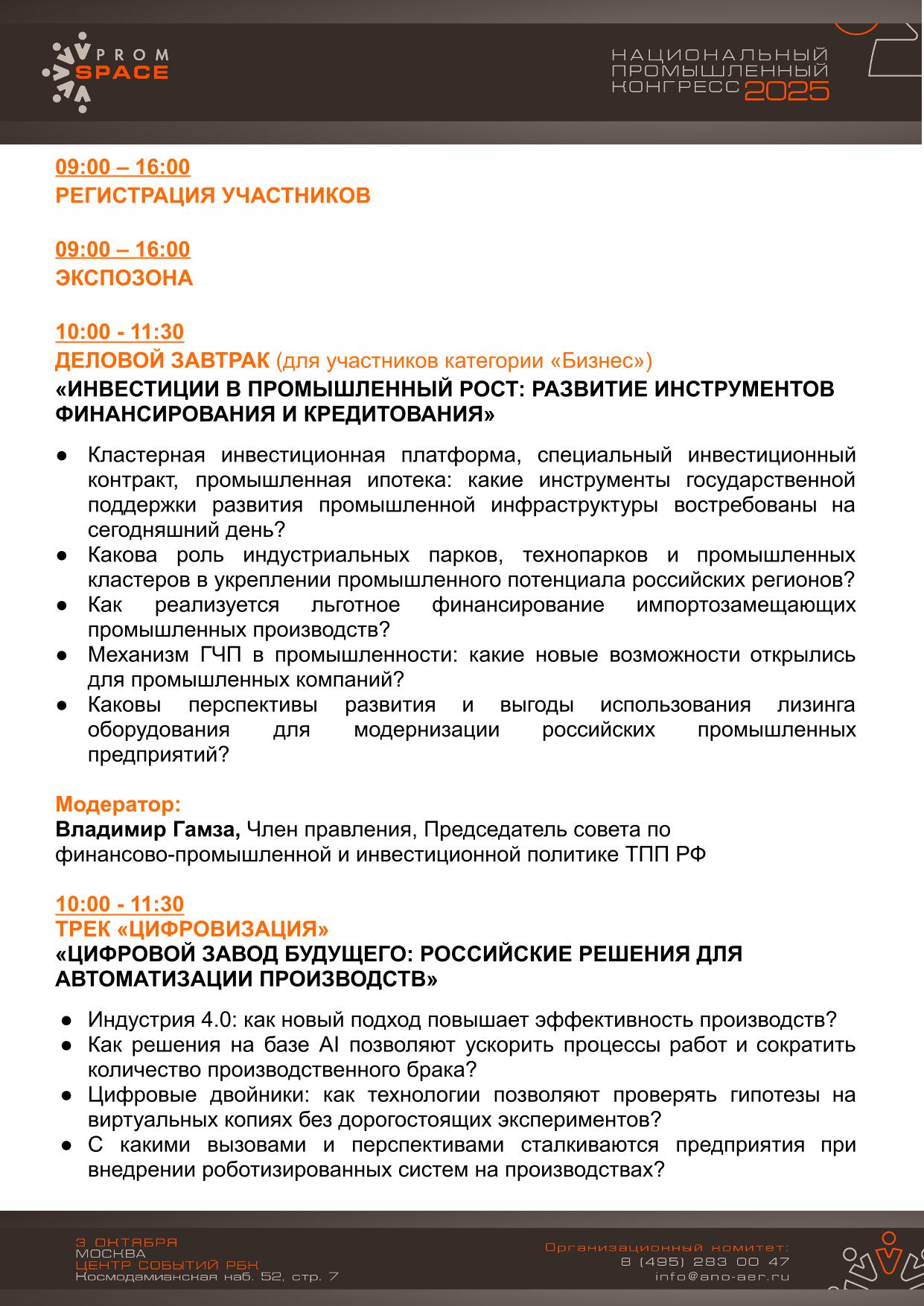 3 октября 2025 года в Центре событий РБК при официальной поддержке Министерства промышленности и торговли Российской Федерации состоится Национальный промышленный Конгресс PromSpace