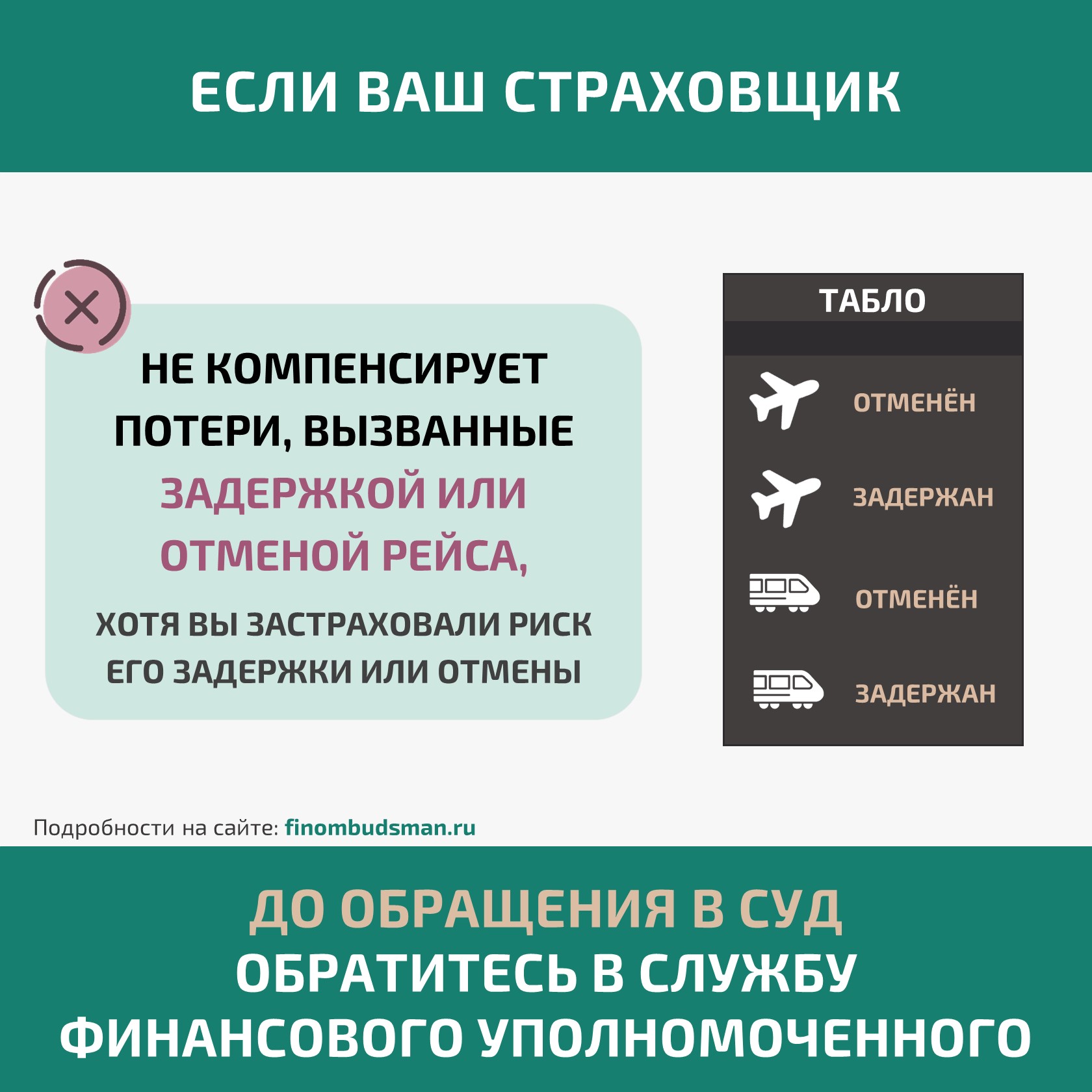 — не компенсирует потери, вызванные задержкой или отменой рейса, хотя вы застраховали риск его задержки или отмены;
