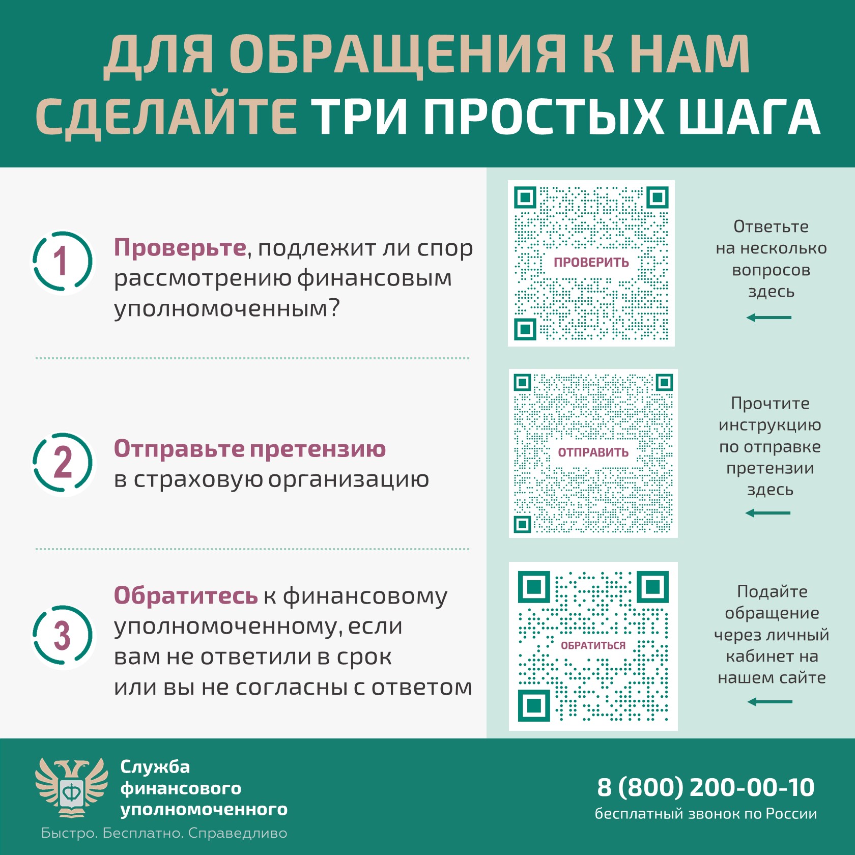 Финансовый уполномоченный бесплатно рассматривает в досудебном порядке обращения клиентов страховых организаций – физических лиц, содержащие перечисленные выше денежные требования в размере не более 500 тысяч рублей, предъявленные ими к страховщикам, оказавшим им финансовые услуги.