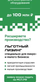 Корпорация МСП предоставляет малому бизнесу продукты льготного лизингового финансирования для приобретения нового оборудования по ставке 6% для российского оборудования и 8% – для зарубежного. Подать заявку на получение лизингового финансирования можно в личном кабинете на цифровой платформе МСП.РФ.