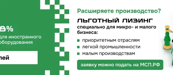Корпорация МСП реализует льготный лизинг в рамках Федерального проекта «Малое и среднее предпринимательство и поддержка индивидуальной предпринимательской инициативы», который 2025 году вошёл в состав национального проекта «Эффективная и конкурентная экономика».